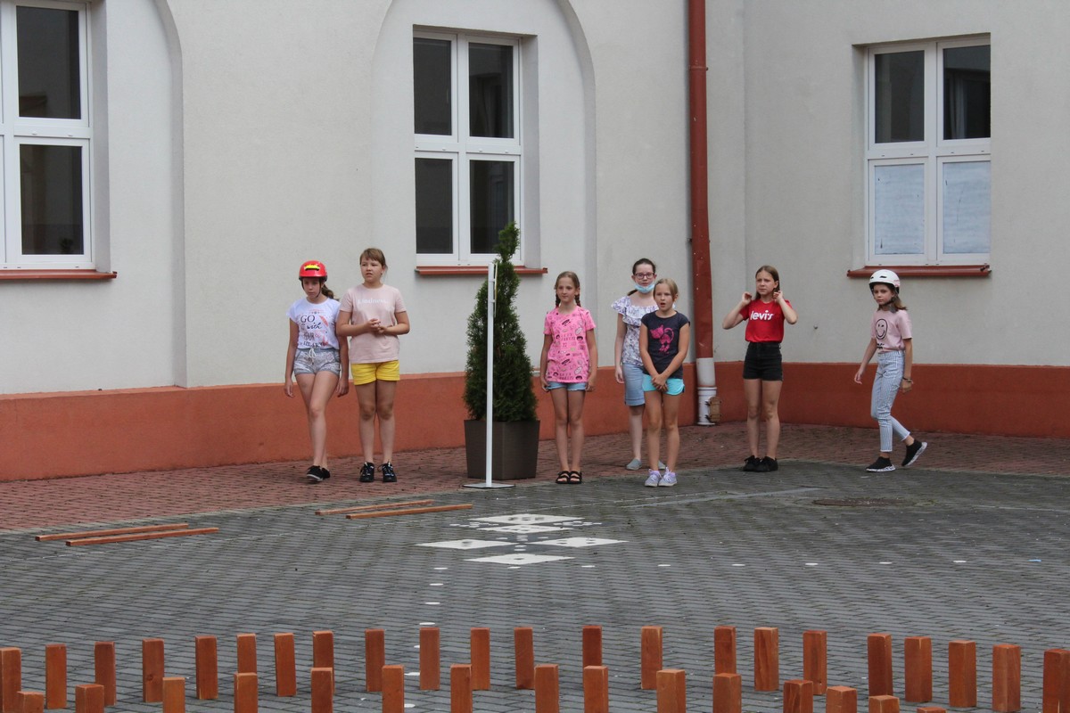 Umiejętności jazdy na rowerze i wykorzystywanie wiedzy teoretycznej w praktyce - to elementy, które były weryfikowane podczas pokonywania toru przeszkód ustawionego na szkolnym dziedzińcu.