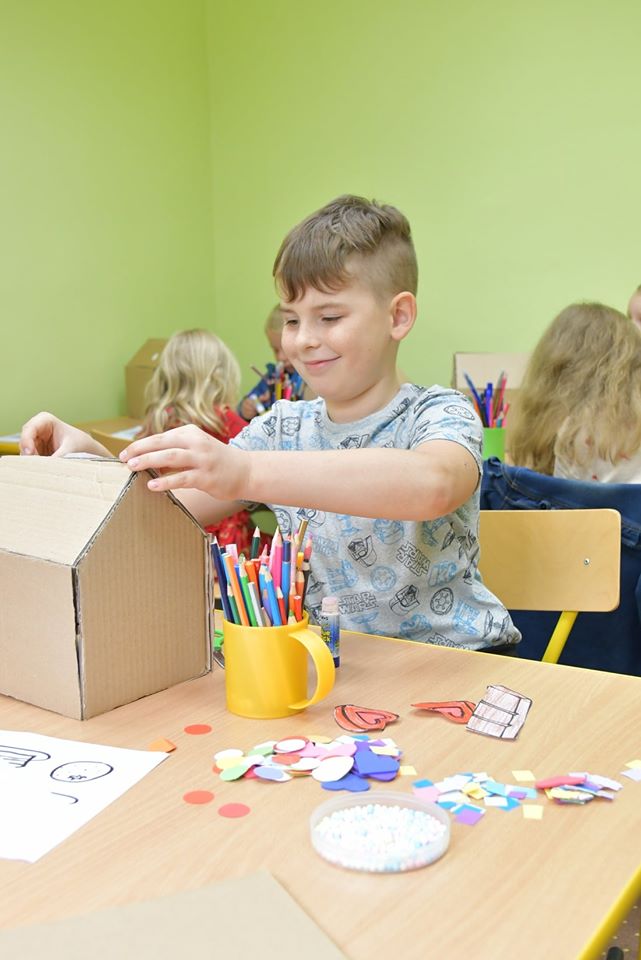 Kolejny dzień wakacyjnych zajęć obfitował w morskie pejzaże. Przy użyciu muszelek, farb i piasku wykonano piękne krajobrazy morskie.