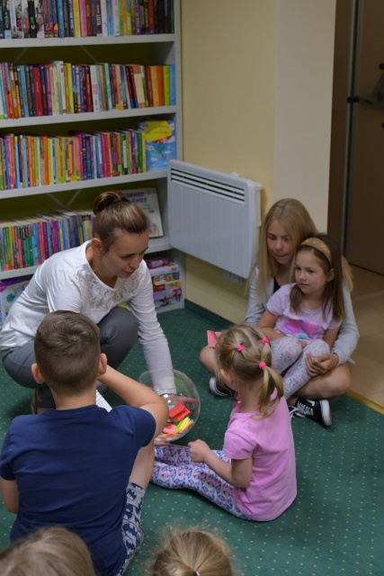 W ostatnim tygodniu wspólnych zabaw w bibliotece tworzono barwne lampiony, wykorzystując do tego słoiki, kolorową bibułę, tasiemki oraz błyszczące cekiny.