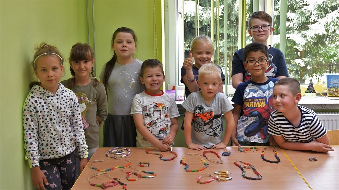 W ostatnim tygodniu wspólnych zabaw w bibliotece tworzono barwne lampiony, wykorzystując do tego słoiki, kolorową bibułę, tasiemki oraz błyszczące cekiny.
