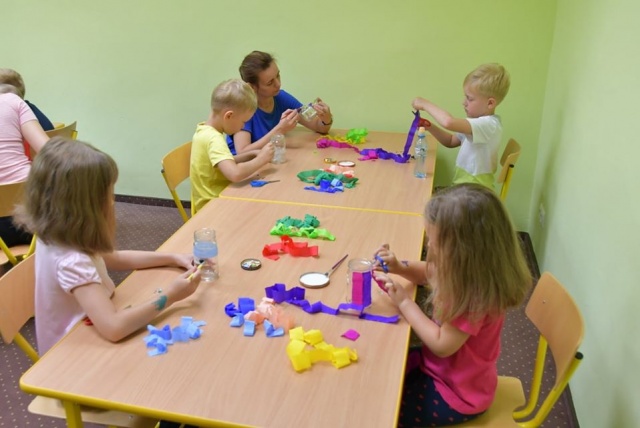W ostatnim tygodniu wspólnych zabaw w bibliotece tworzono barwne lampiony, wykorzystując do tego słoiki, kolorową bibułę, tasiemki oraz błyszczące cekiny.