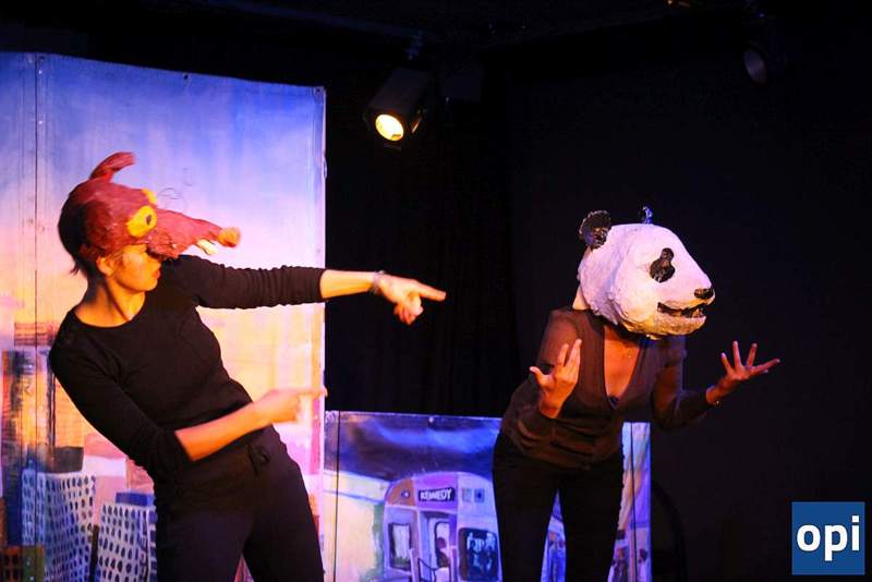 W spektaklu wykorzystano autorską muzykę, aktorki korzystały z masek zwierząt, a scenografia została stworzona na płótnie.
