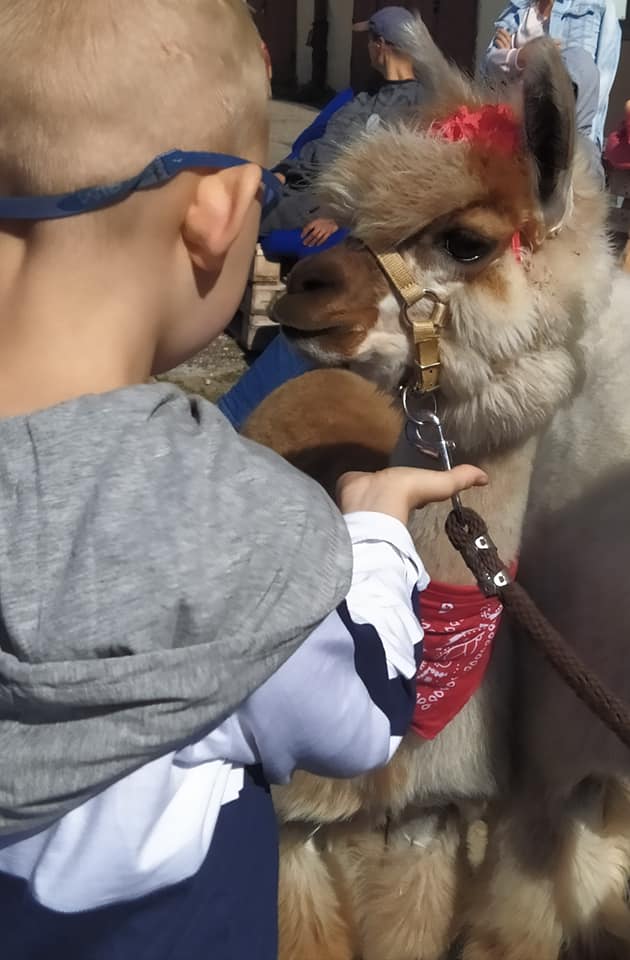 Kontakt z alpakami pozytywnie wpływa na uczniów - wspomaga ich rozwój ruchowy, budowanie samooceny, a także uczy pewności siebie.