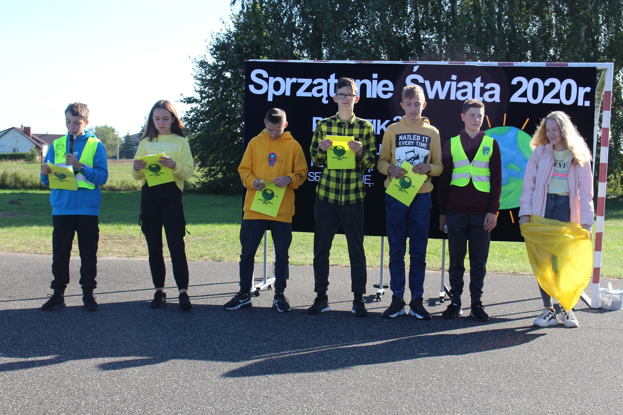 Społeczność szkolna najpierw spotkała się na boisku, gdzie została przywitana przez dyrektor ZPPO w Broku Joannę Ciskowską.