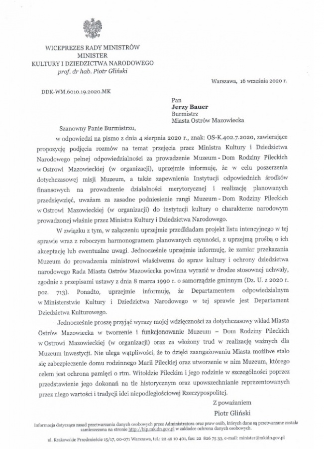 Minister prof. dr hab. Piotr Gliński przyjął propozycję burmistrza Jerzego Bauera.