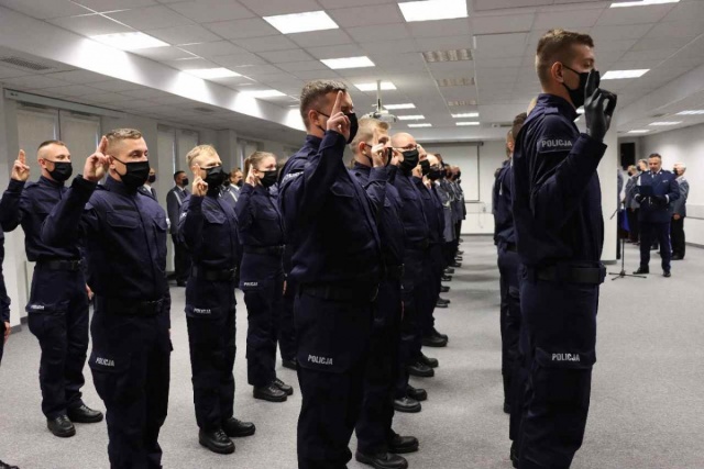 Podczas uroczystości nie zabrakło też złożenia przez nowych policjantów ślubowania.