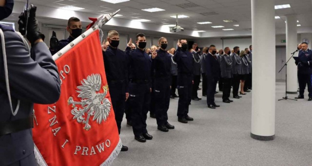 Podczas uroczystości nie zabrakło też złożenia przez nowych policjantów ślubowania.