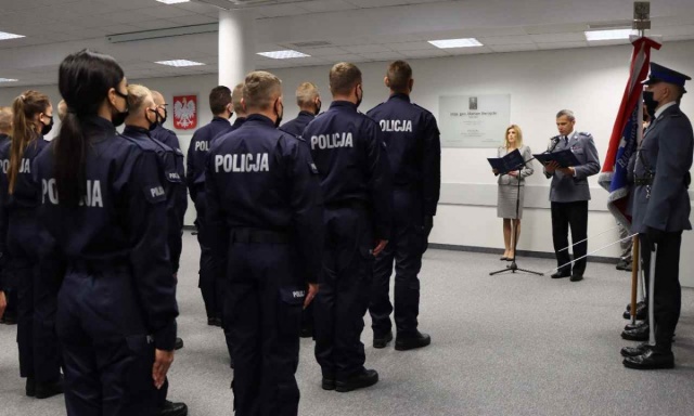 Podczas uroczystości nie zabrakło też złożenia przez nowych policjantów ślubowania.