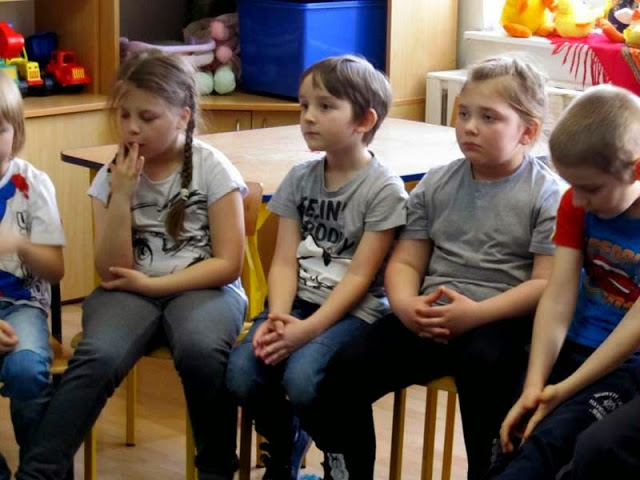 Pani Marysia opowiedziała dzieciom o tradycjach kurpiowskich, o tym skąd wzięła się nazwa Kurpie, jak nazywają się elementy stroju regionalnego.