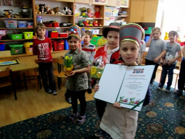 Pani Marysia opowiedziała dzieciom o tradycjach kurpiowskich, o tym skąd wzięła się nazwa Kurpie, jak nazywają się elementy stroju regionalnego.