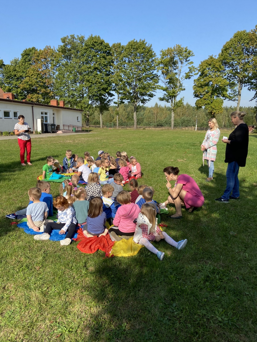 Dzieci z chęcią uczestniczyły w grach i zabawach ruchowych zorganizowanych przez panie bibliotekarki.
