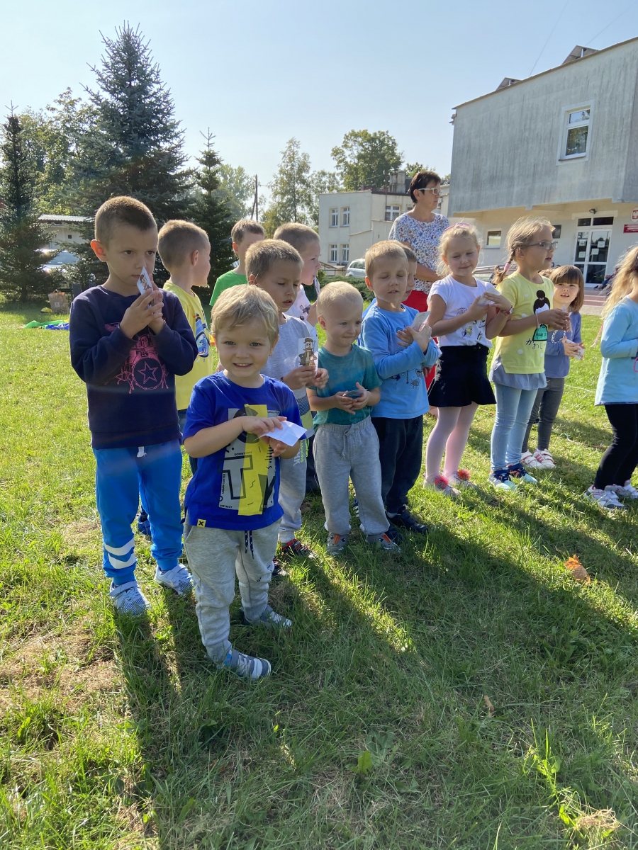Dzieci z chęcią uczestniczyły w grach i zabawach ruchowych zorganizowanych przez panie bibliotekarki.