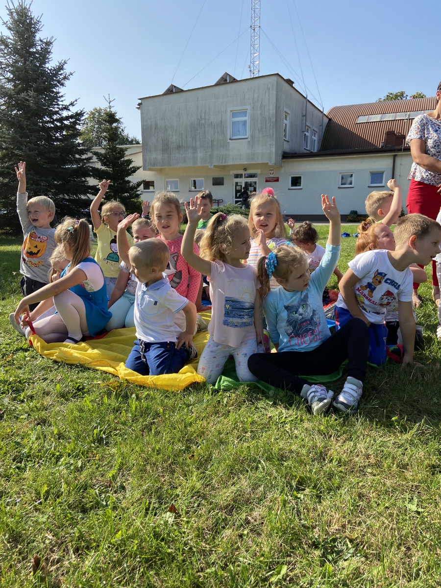 Dzieci z chęcią uczestniczyły w grach i zabawach ruchowych zorganizowanych przez panie bibliotekarki.