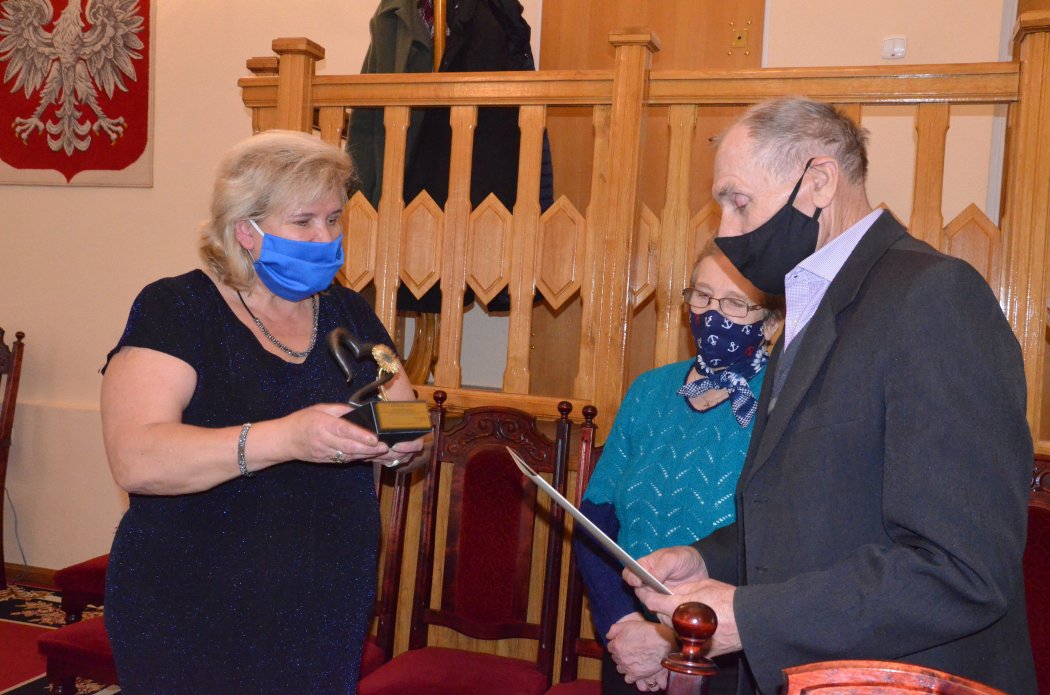 Statuetki wręczyła wójt gminy Małkinia Górna Bożena Kordek.