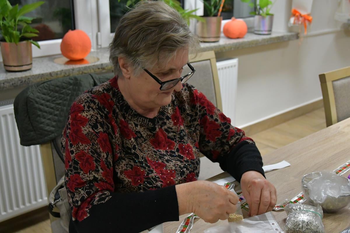 Efekt zajęć to wykonanie przez uczestniczki warsztatów długich taśm z wyhaftowanymi tradycyjnymi wzorami Kurpi Białych.