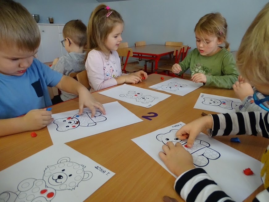 Przedszkolaki wykonywały m.in. misie z papieru.