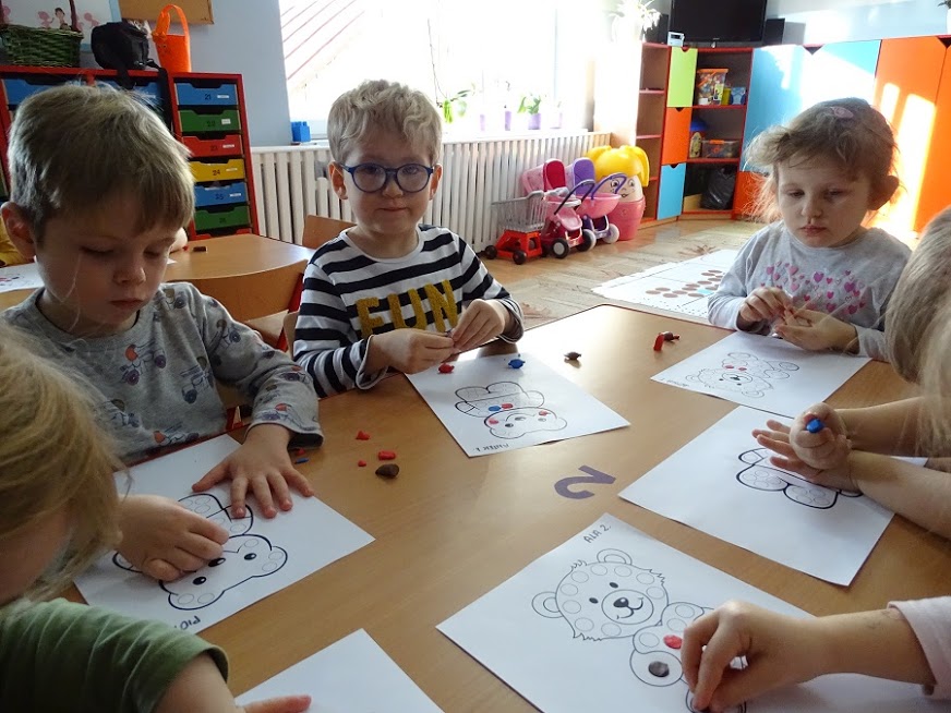 Przedszkolaki wykonywały m.in. misie z papieru.