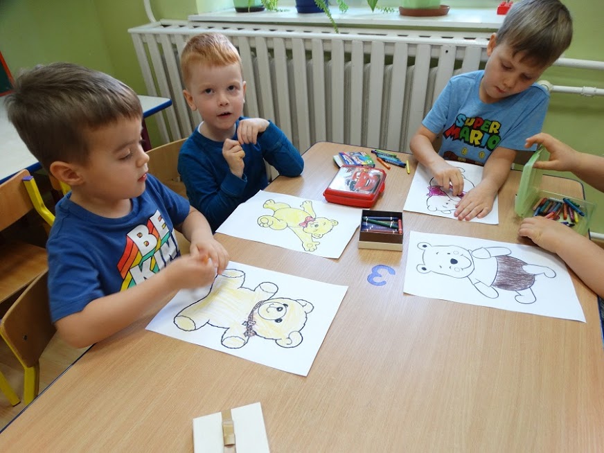 Przedszkolaki wykonywały m.in. misie z papieru.