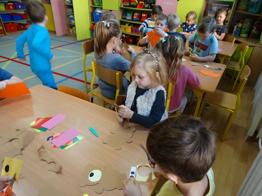 Przedszkolaki wykonywały m.in. misie z papieru.