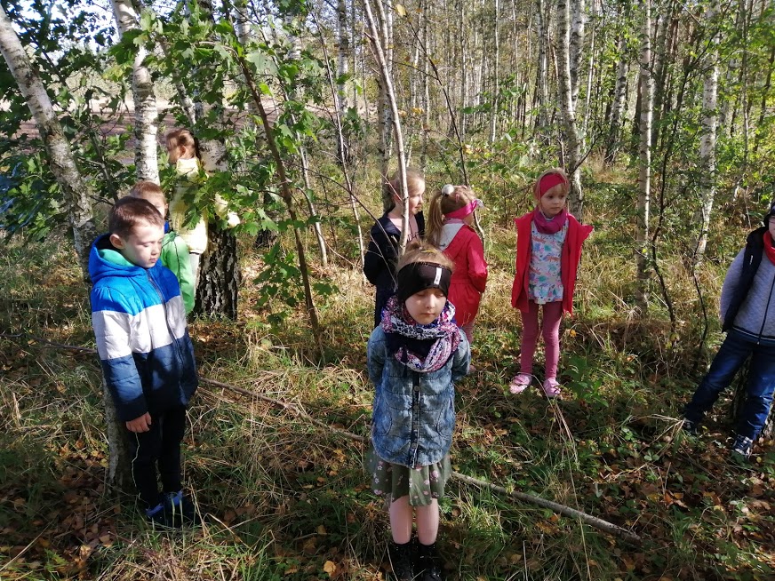 Przedszkolaki wybrały się na wycieczkę do lasu.