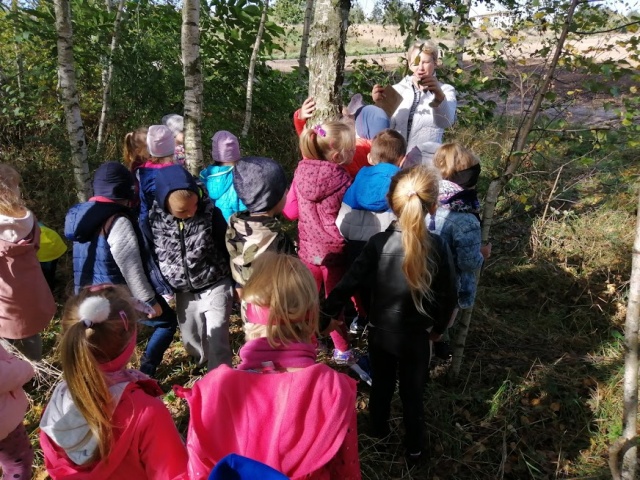 Przedszkolaki wybrały się na wycieczkę do lasu.
