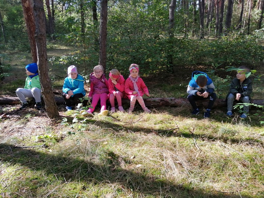 Przedszkolaki wybrały się na wycieczkę do lasu.