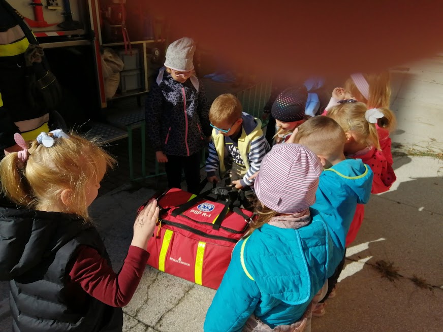 Z zachowaniem wszelkich środków ostrożności strażacy przeprowadzili z dziećmi krótką pogadankę.
