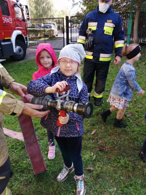 Z zachowaniem wszelkich środków ostrożności strażacy przeprowadzili z dziećmi krótką pogadankę.