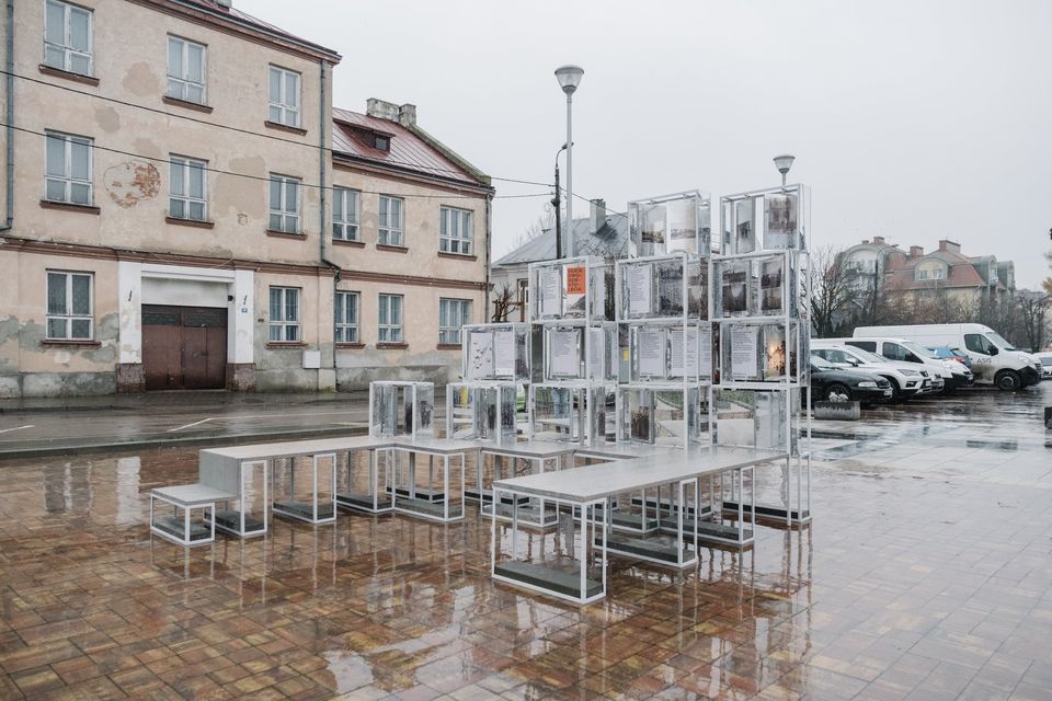 Wystawa plenerowa została ujęta w ramy instalacji przestrzennej.