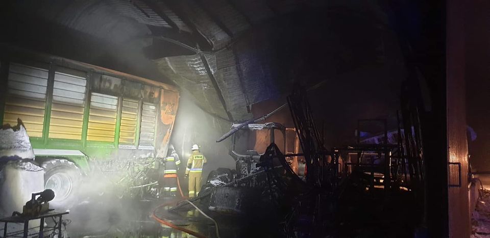 Zadania strażaków obejmowały głównie zabezpieczenie miejsca zdarzenia oraz ugaszenie powstałego pożaru.