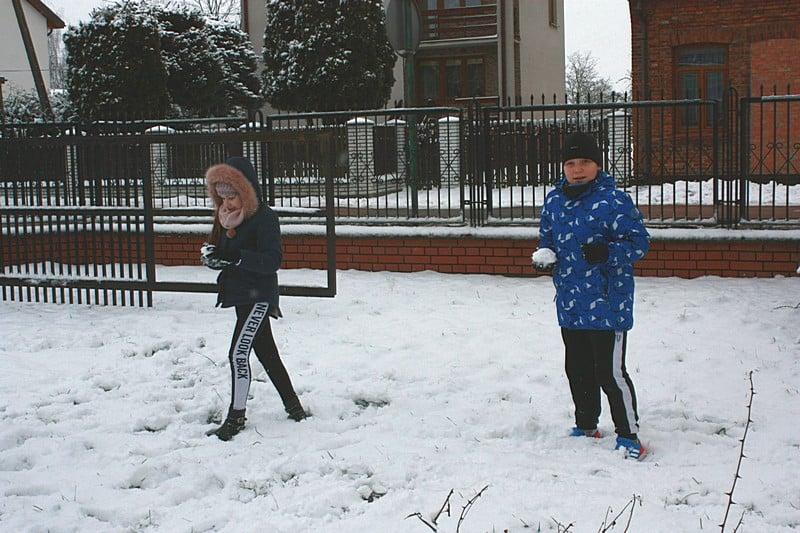 Dzieci z ogromną radością oddały się zimowemu szaleństwu.