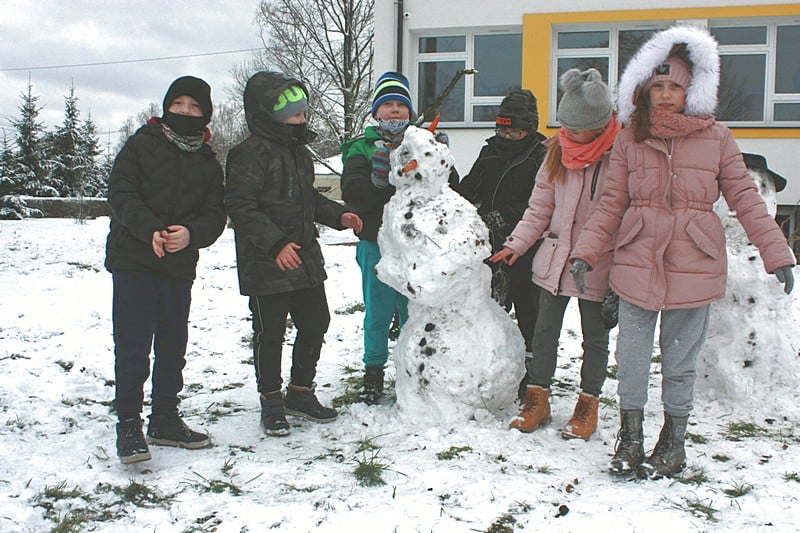 Dzieci z ogromną radością oddały się zimowemu szaleństwu.