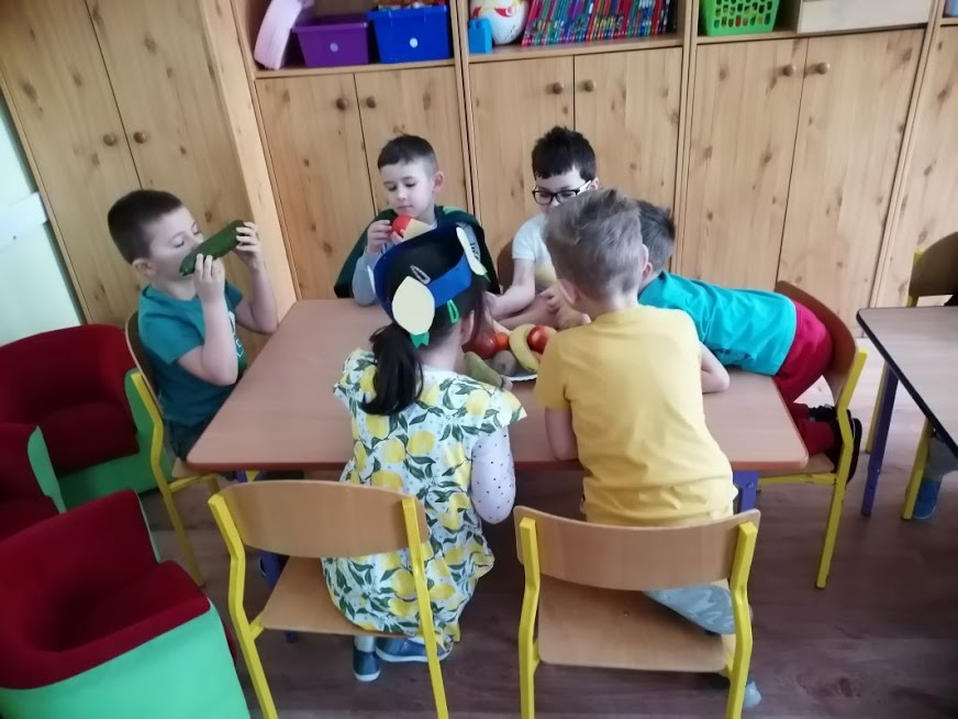 Do przedszkola przyszły przebrane w kolorowe stroje przedstawiające owoce lub warzywa.
