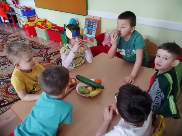 Do przedszkola przyszły przebrane w kolorowe stroje przedstawiające owoce lub warzywa.