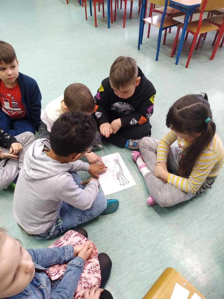 Dzieci z zaangażowaniem wykonywały ćwiczenia kształtujące umiejętności porozumiewania się z uwzględnieniem dbałości o uczucia innych.