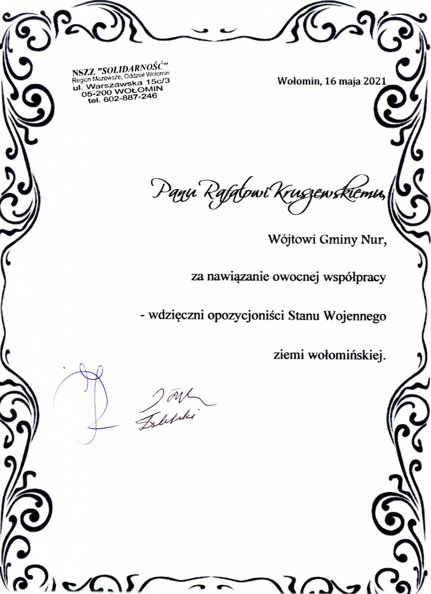 16 maja 2021 r. Biblioteka Publiczna Gminy Nur gościła przedstawicieli NSZZ "Solidarność", Regionu Mazowsze, Oddziału Wołomin.