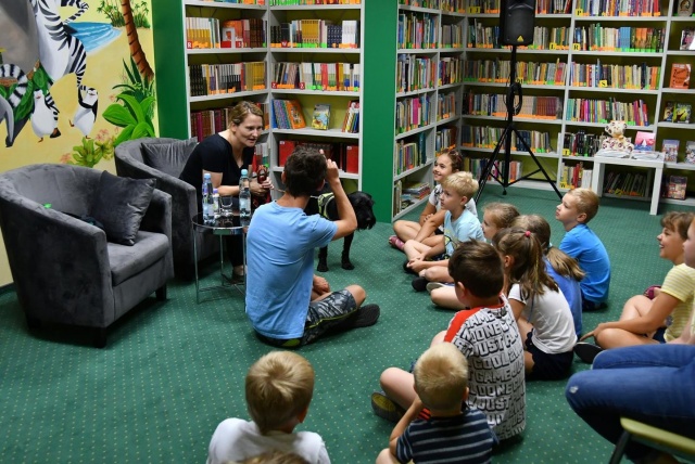 Na trzecie warsztaty bajkoterapii do Biblioteki Publicznej w Broku przyjechała 21 lipca zajmująca się między innymi dogoterapią Nina Kruk z synem, a towarzyszył im ich czworonożny przyjaciel Born.