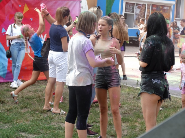 Eksplozja kolorów to popularna zabawa polegająca na wyrzucaniu w górę przez setki bądź tysiące ludzi kolorów "Holi", które tworzą wielką barwną chmurę.