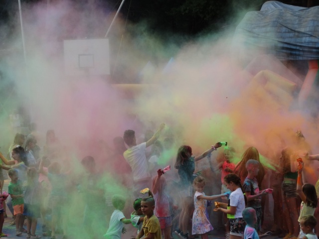 Eksplozja kolorów to popularna zabawa polegająca na wyrzucaniu w górę przez setki bądź tysiące ludzi kolorów "Holi", które tworzą wielką barwną chmurę.