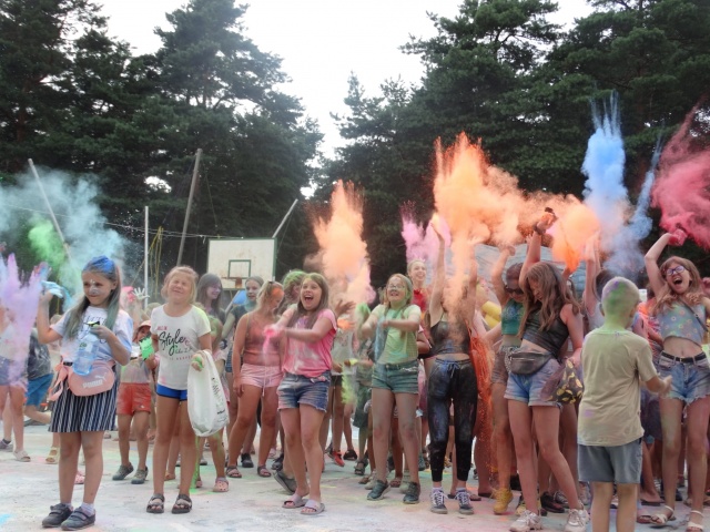 Eksplozja kolorów to popularna zabawa polegająca na wyrzucaniu w górę przez setki bądź tysiące ludzi kolorów "Holi", które tworzą wielką barwną chmurę.