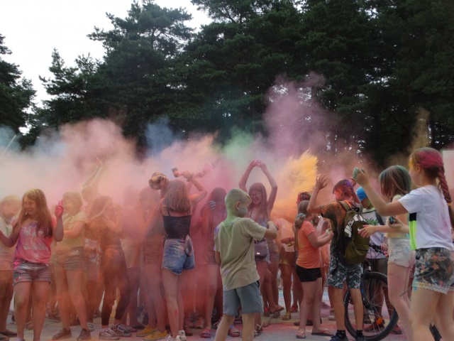 Eksplozja kolorów to popularna zabawa polegająca na wyrzucaniu w górę przez setki bądź tysiące ludzi kolorów "Holi", które tworzą wielką barwną chmurę.