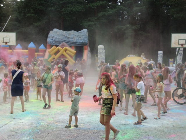 Eksplozja kolorów to popularna zabawa polegająca na wyrzucaniu w górę przez setki bądź tysiące ludzi kolorów "Holi", które tworzą wielką barwną chmurę.