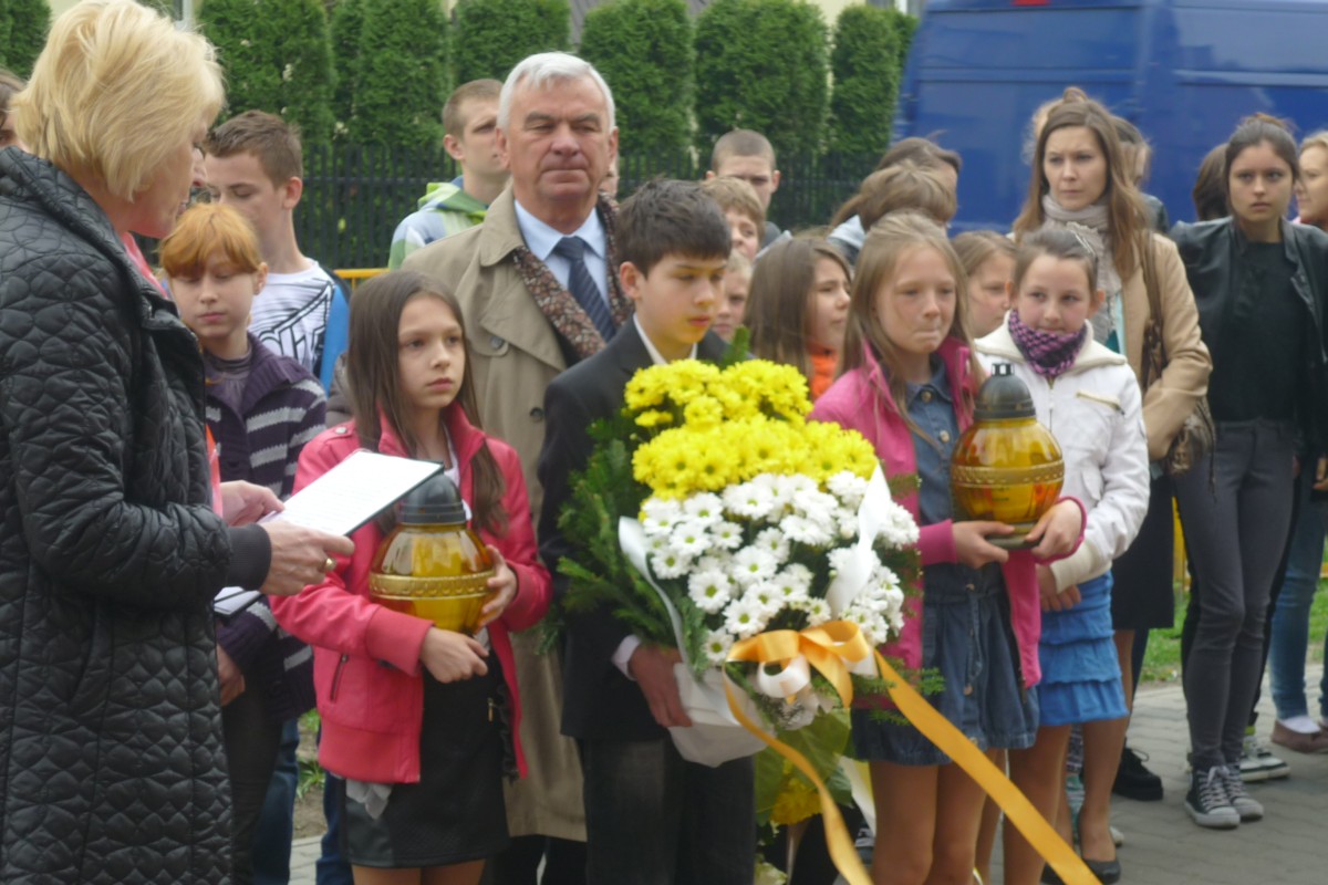 28 kwietnia 2014r. młodzież, nauczyciele i dyrekcja ostrowskiej "Dwójki" przed pomnikiem papieża oddała hołd swojemu patronowi, Świętemu Janowi Pawłowi II.