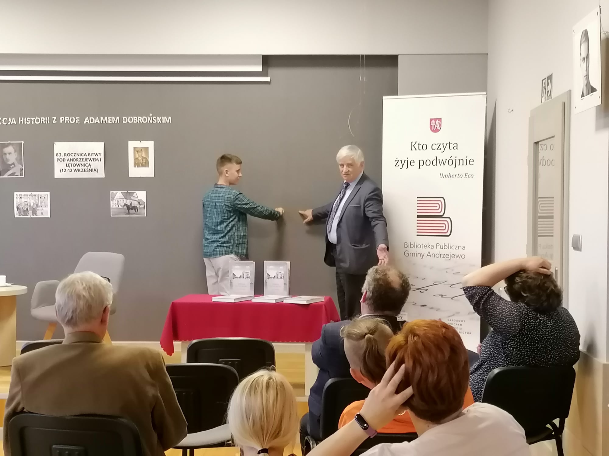 Prof. Dobroński odwiedził Bibliotekę Publiczną Gminy Andrzejewo - Zdjęcie 13/15