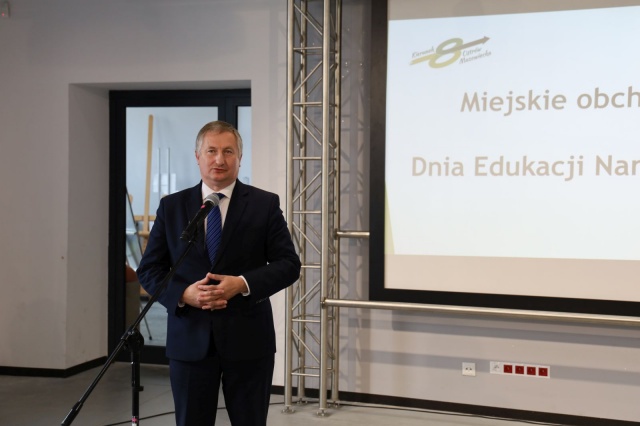 Miejskie obchody Dnia Edukacji Narodowej rozpoczął krótki koncert instrumentalno-wokalny w wykonaniu Kameralnego Zespołu Instrumentalnego oraz wokalistek Ostrowskiego Studia Piosenki.