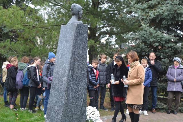 Spotkanie tradycyjnie rozpoczęło się od złożenia kwiatów i zapalenia zniczy pod pomnikiem upamiętniającym uczoną.