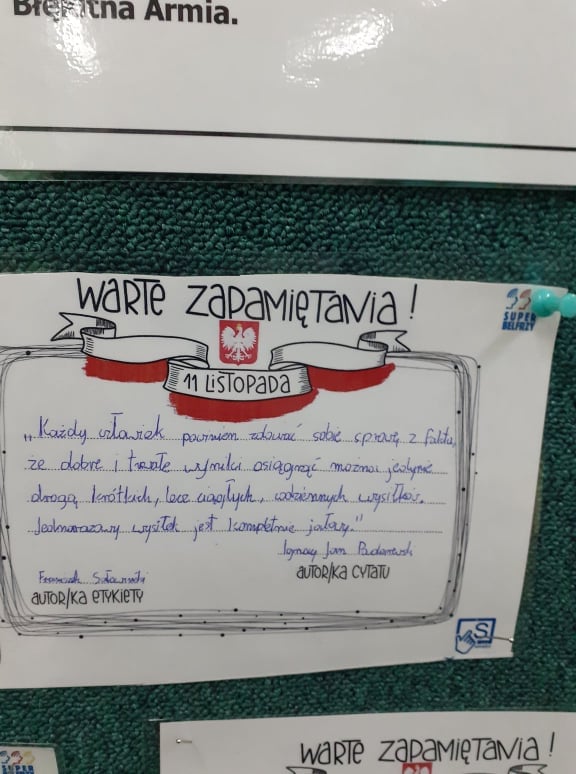 9 listopada 2021 r. uczniowie klas VII i VIII uczestniczyli w spotkaniu historycznym poświęconym odzyskaniu niepodległości, które zostało przeprowadzone przez lokalnego pasjonata historii Marka Krajewskiego.