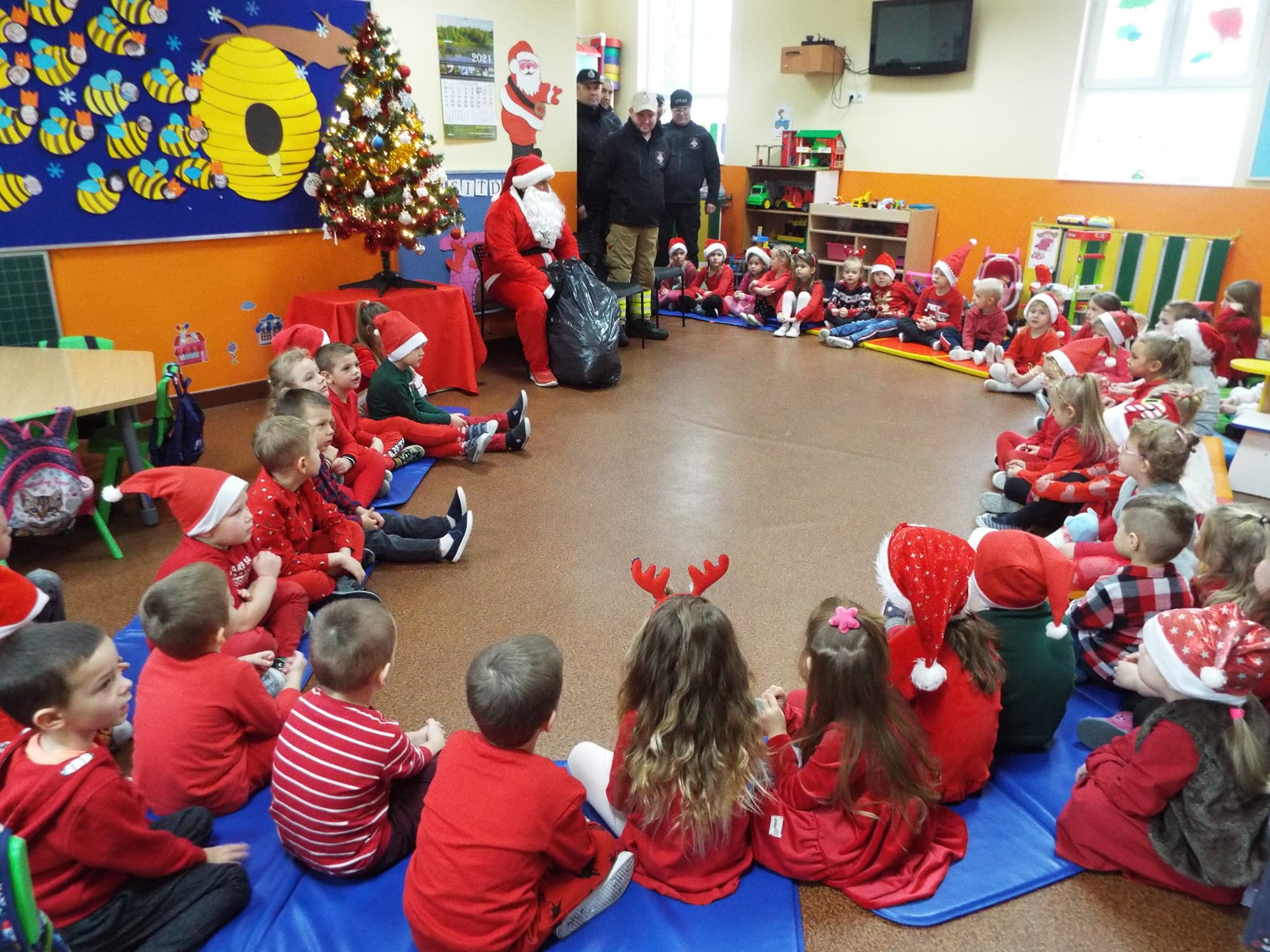W mikołajki strażacy wraz ze św. Mikołajem odwiedzili przedszkolaków.