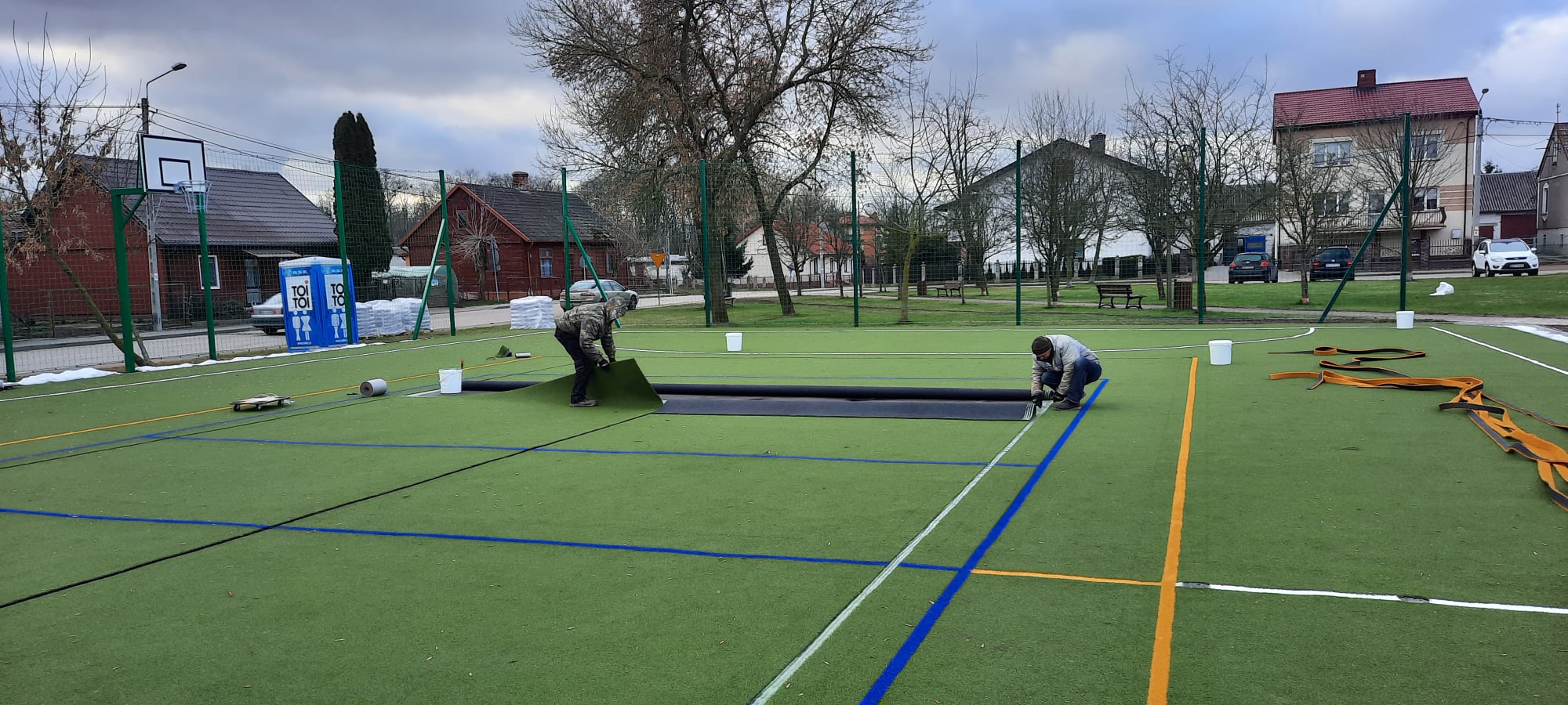 Prace polegają na wymianie starej zniszczonej nawierzchni, wykonaniu nowej podbudowy z betonu jamistego i nowej nawierzchni ze sztucznej trawy.