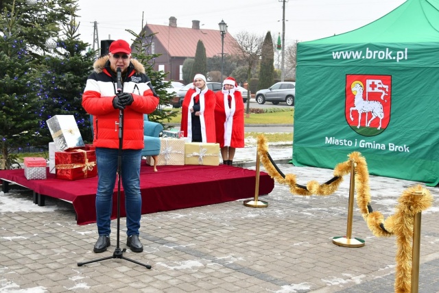 Przed przybyciem św. Mikołaja na placu przed ratuszem na choinkach rozbłysły lampki, a z głośników popłynęła świąteczna muzyka.